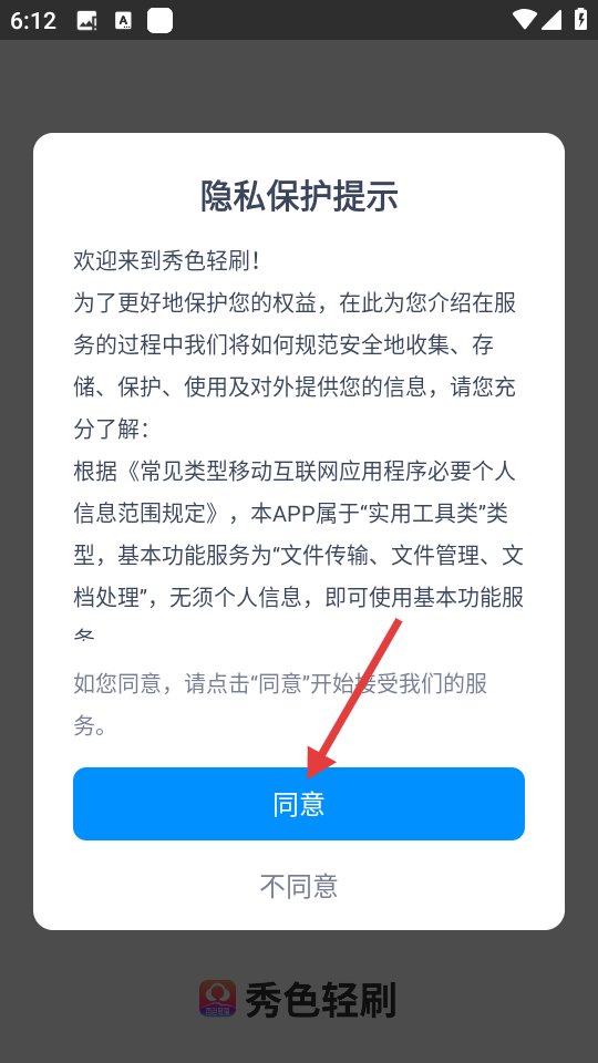 1、在“隐私保护提示”弹窗中,点击【同意】按钮。
