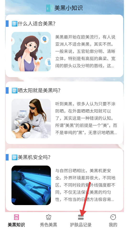2、进入主页面后,点击底部导航栏中的【护肤品记录】选项。
