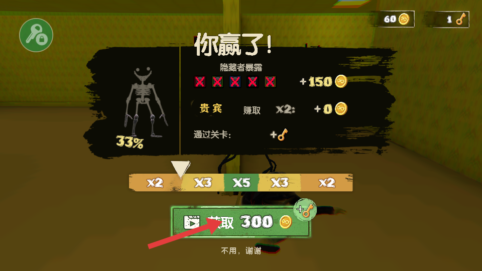 4、通关后可选择获取奖励,积累金币和钥匙,继续游戏。