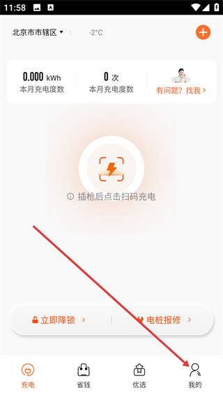 1、打开汇充电APP,点击底部【我的】进入个人页面,