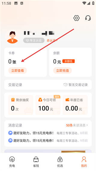 2、找到【卡券】板块,点击【立即查看】进入活动中心。