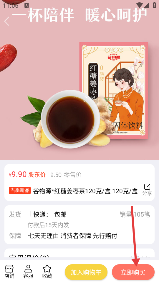 3、进入商品详情页,点击【立即购买】。