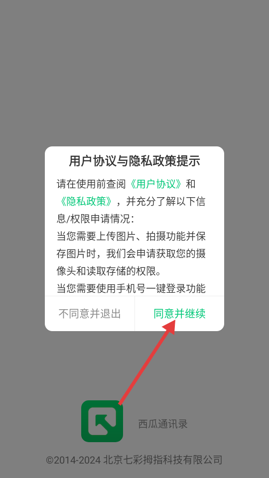 1、首次使用,阅读并同意《用户协议》和《隐私政策》。