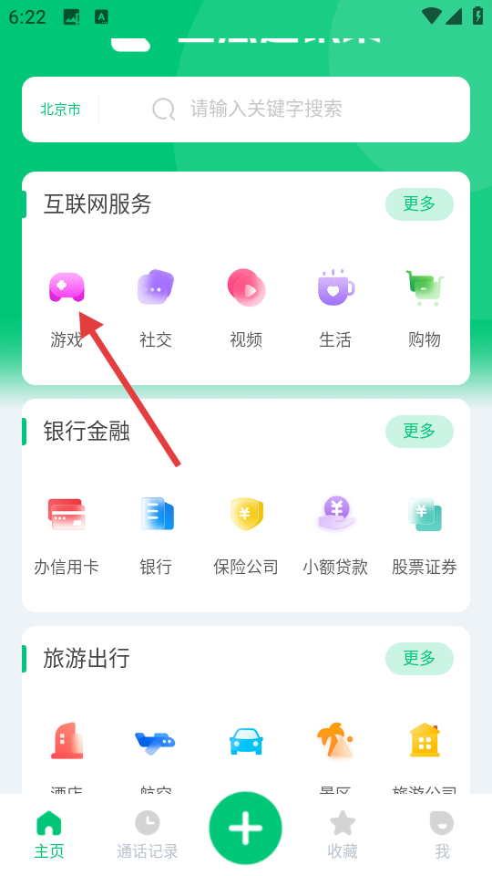 2、通过搜索框输入机构名称或服务类别查找公共服务电话,查看详情后可直接拨打或收藏至个人常用列表。