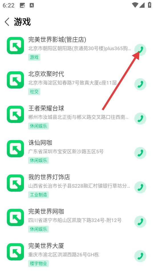 3、在游戏商家列表中,选择想要查找的商家(如“完美世界影城”)。