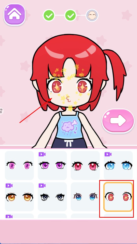 1、选择【星星眼】装饰角色眼部,提升形象吸引力,助力积累初始粉丝人气。