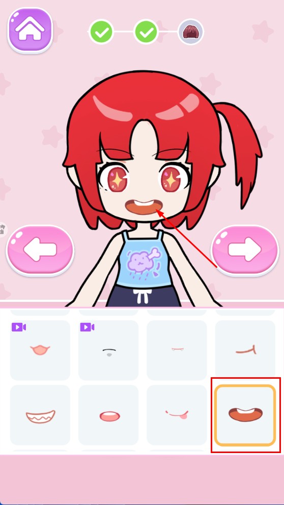 2、搭配【微笑嘴】造型让角色表情更生动,吸引观众停留积累早期人气基础。