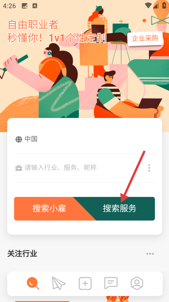 1、在APP首页,点击【搜索服务】进入服务列表页面。