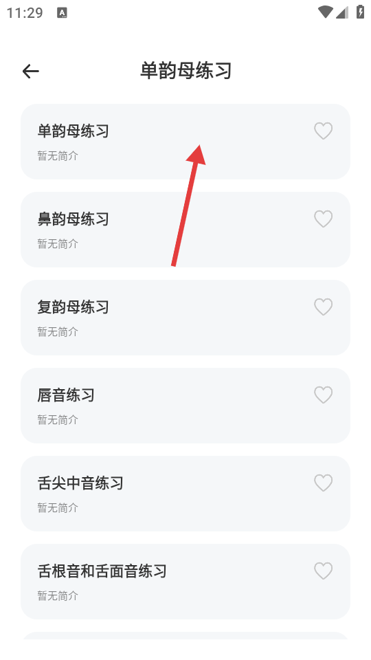 3、在练习分类页面,选择【单韵母练习】进入具体练习内容页面。