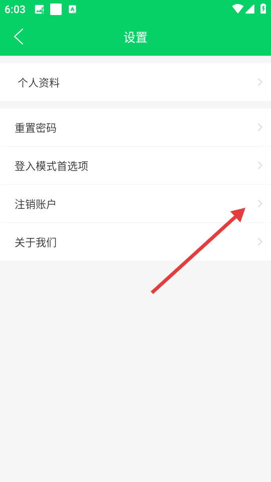 3、在设置页面中,点击【注销账户】进入注销确认页面。