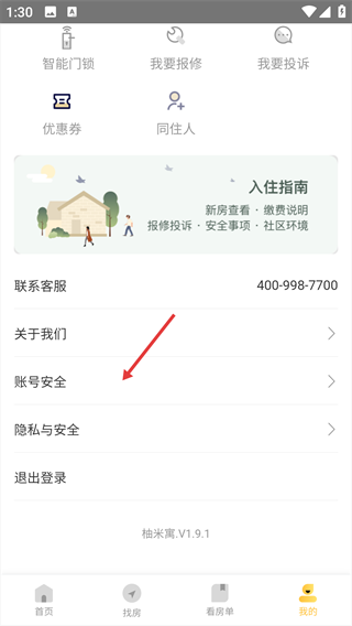 2、在个人中心页面,找到“账号安全”选项并点击。