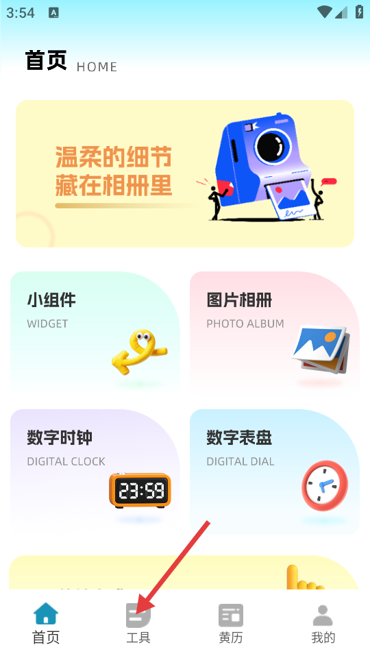 1、在APP底部导航栏,点击【工具】进入工具页面。