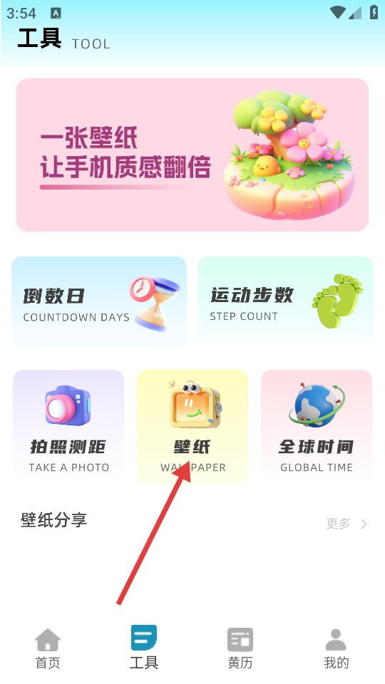 2、在工具页面,点击【壁纸】进入壁纸选择页面。