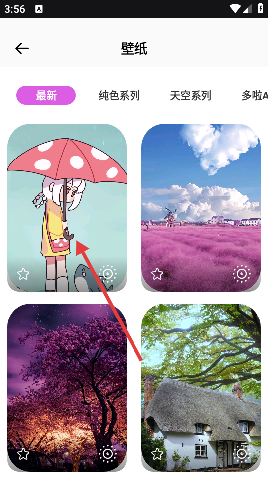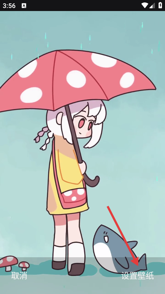 3、在壁纸选择页面,选择如带有撑伞女孩和小鲨鱼的壁纸进入详情页。