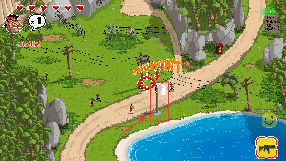 2、抵达【CHECKPOINT】旗帜检查点,激活保存进度,警惕沿途敌人,用武器清理确保安全通过。