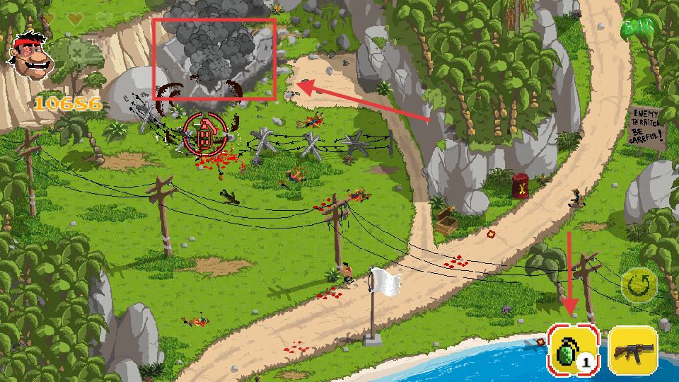 4、使用【手榴弹】(数量【1】)攻击敌人聚集区,借爆炸清除大量敌人或摧毁障碍,提升突破效率。