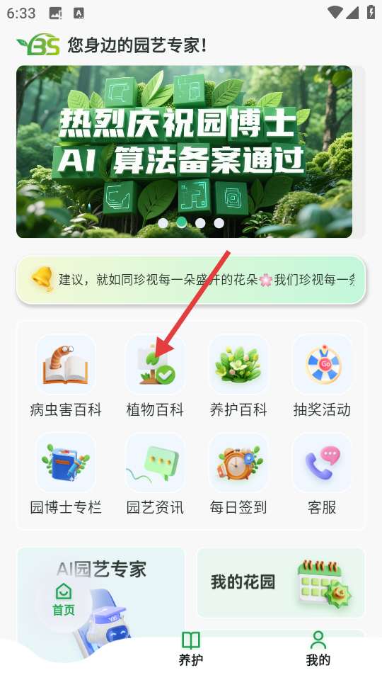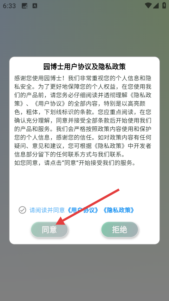 1、阅读并同意《园博士用户协议》《隐私政策》后,点击【同意】,可进入主界面。