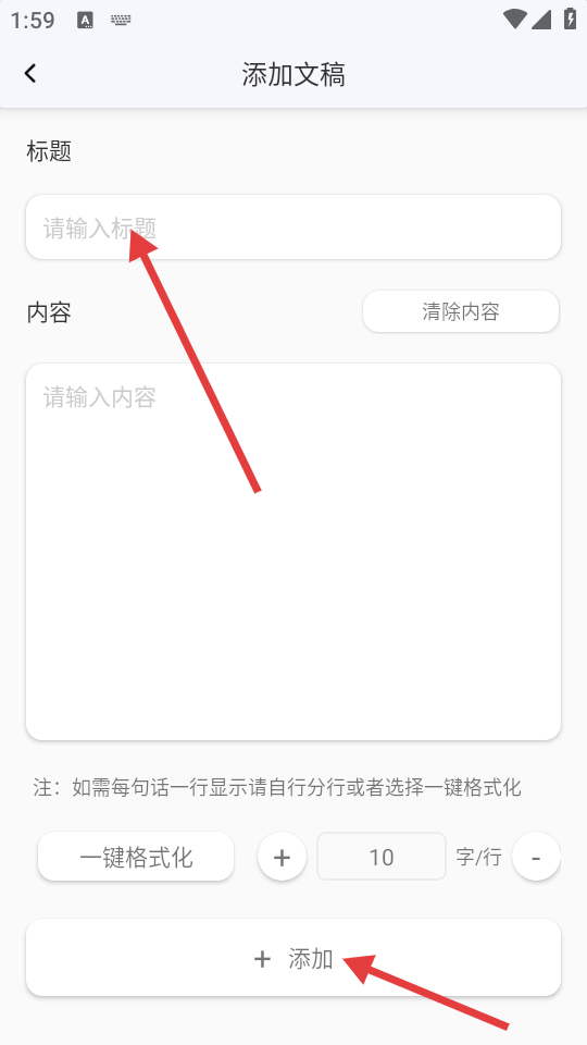 4、在添加文稿页面,输入【标题】和【内容】后,点击【+添加】,即可完成文稿添加。