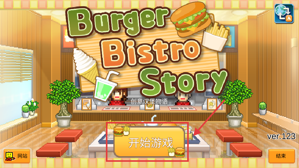 1、点击【开始游戏】按钮,进入创意汉堡物语,开启汉堡店经营之旅。