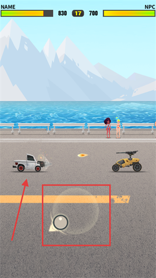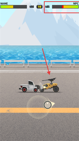 2、战斗时操控车辆(下方操作区)移动,接近【NPC】车辆,利用碰撞或武器发起攻击,注意躲避伤害。