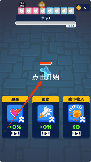 1、游戏开始时,点击【点击开始】,进入【章节1-等级1】的游戏场景,开启挑战。