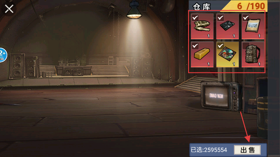 1、在【仓库】中选择多余物品点击出售,获取金币用于修勾机甲升级,提升战力应对地铁复杂关卡挑战。