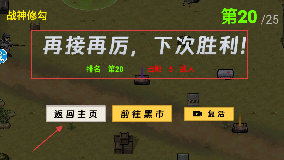 4、战斗结束后若排名靠后,点击【返回主页】总结经验调整战术,下次挑战争取更高排名和更多击败数。