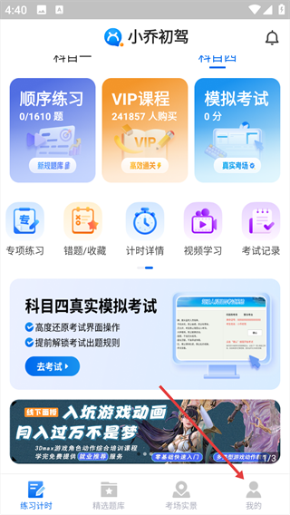 2、在主界面点击【专项练习】选项,进入专项练习页面。