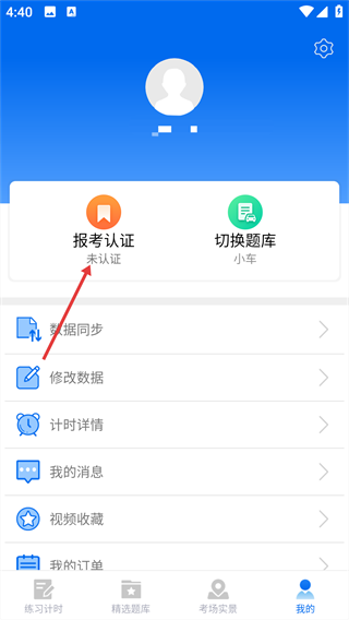 2、在个人中心页面,找到并点击“报考认证”选项。
