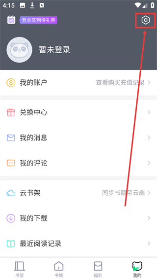 1、在【书架】页面,点击底部导航栏的【我的】按钮,进入个人中心界面。