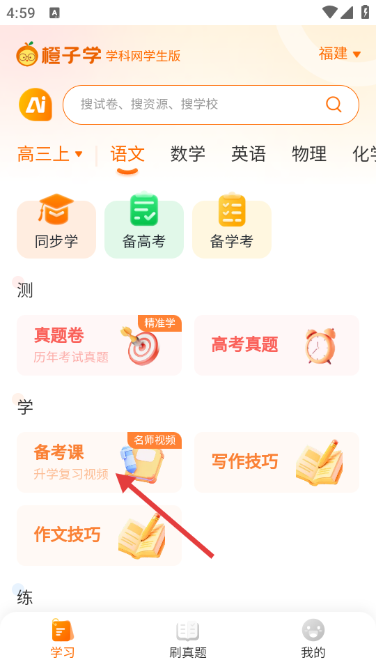2、在软件主界面,点击【备考课】选项,进入备考课页面。