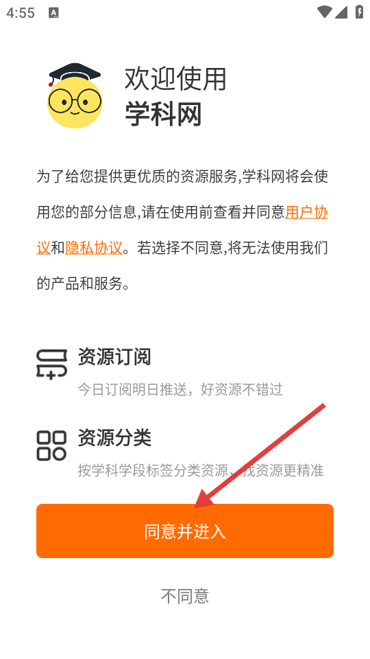 1、在学科网欢迎页面,点击【同意并进入】按钮,进入软件主界面。