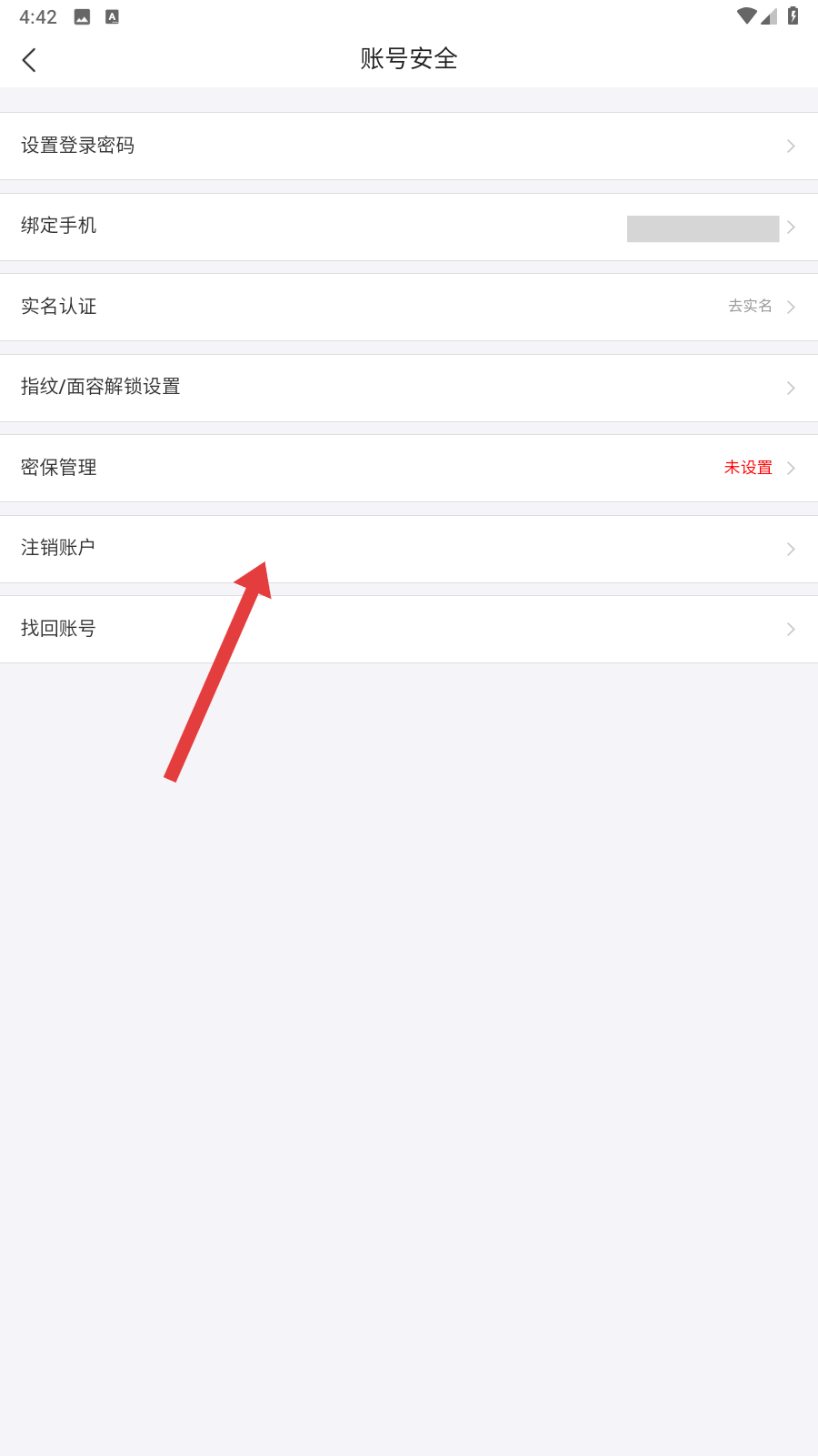 3、在账号安全页面,找到【注销账户】选项,点击进入注销账户的确认页面呢。