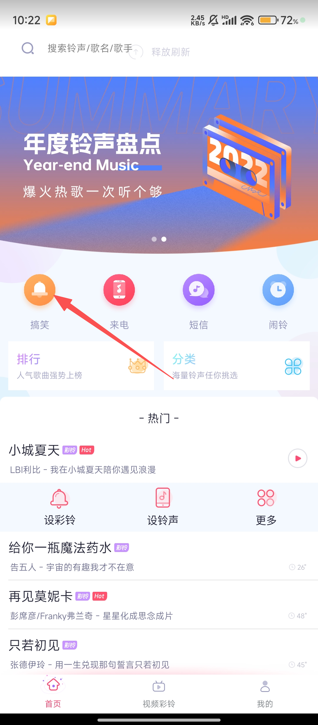 1、我们打开【酷音铃声】软件,在首页点击【搞笑】分类,进入搞笑铃声专区,开始挑选喜欢的铃声吧。