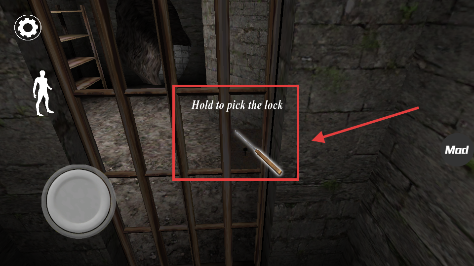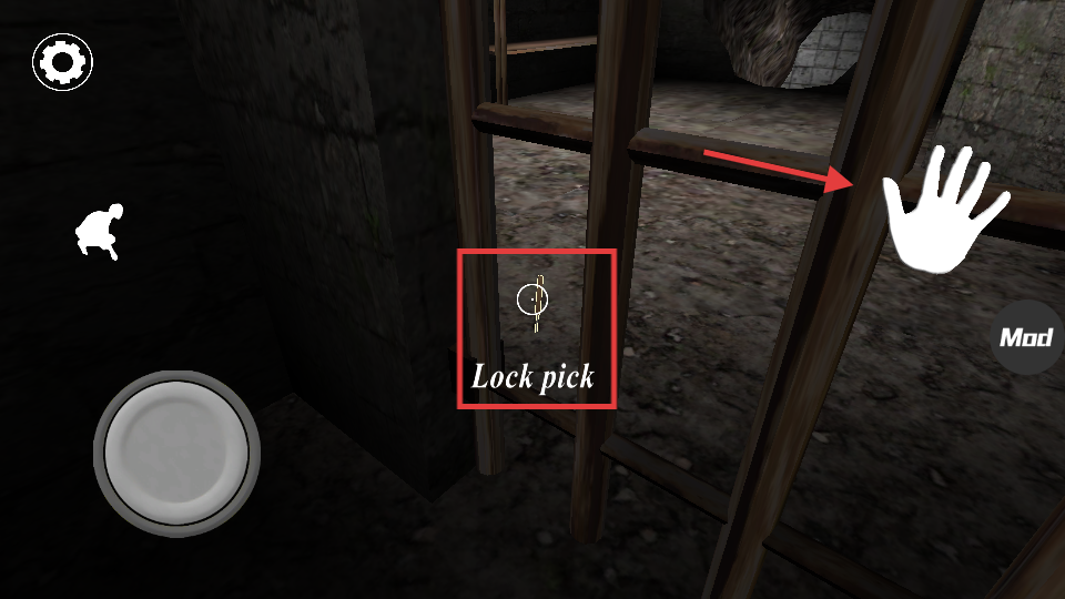 2、靠近牢笼时,获取【Lockpick】工具,点击手形交互图标,准备解锁牢笼。