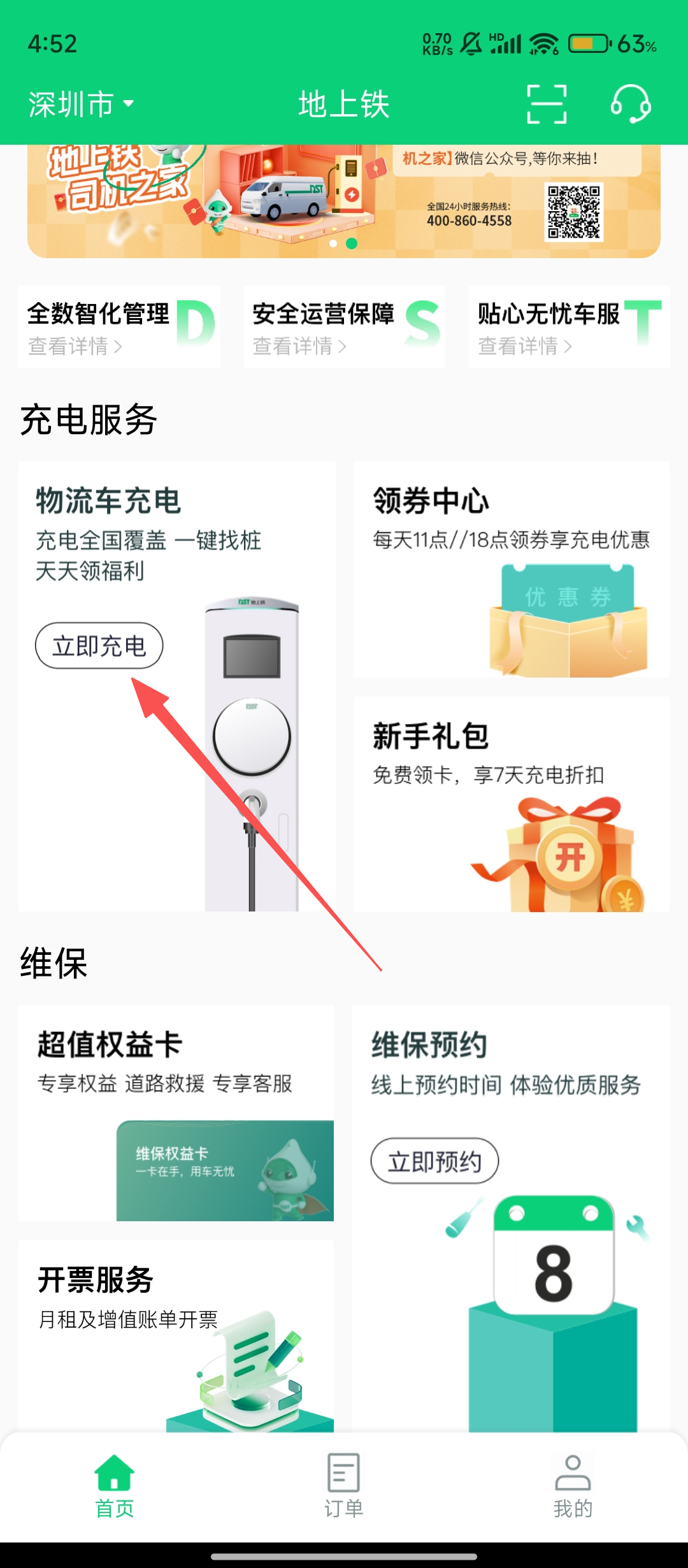 1、打开地上铁,在首页【物流车充电】板块点击【立即充电】,即可进入电站选择页面啦。
