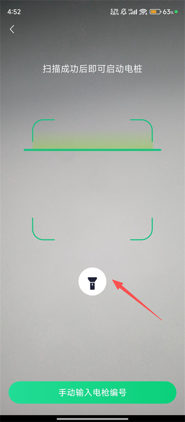 4、在扫码界面,可扫描电桩二维码,也可点击【手动输入电枪编号】,完成后即可启动电桩充电哦。