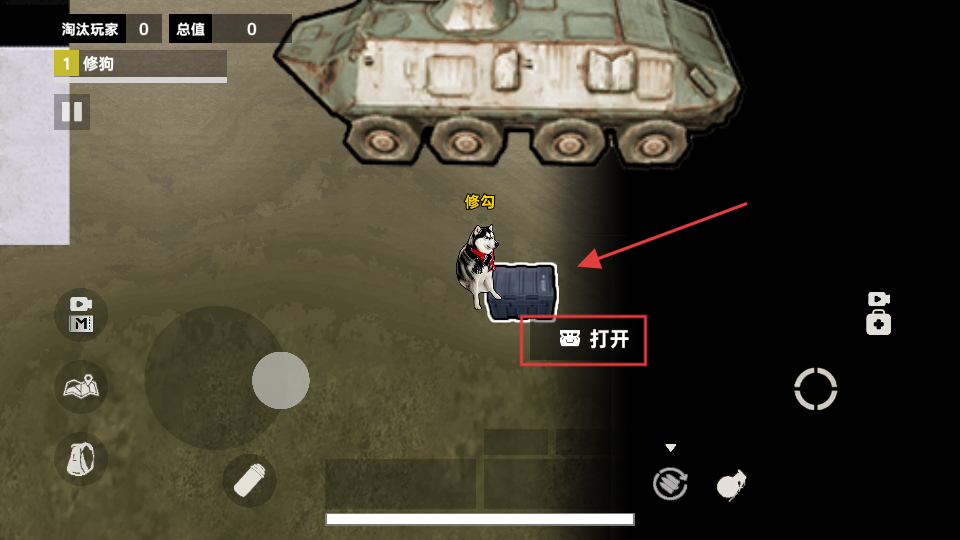 2、靠近物资箱后点击【打开】,获取箱内道具,同时留意周围环境,防范潜在危险。
