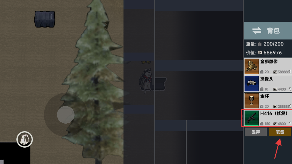 4、在背包中找到【H416(修复)】,点击【装备】,提升战斗能力以应对后续怪物阻拦。