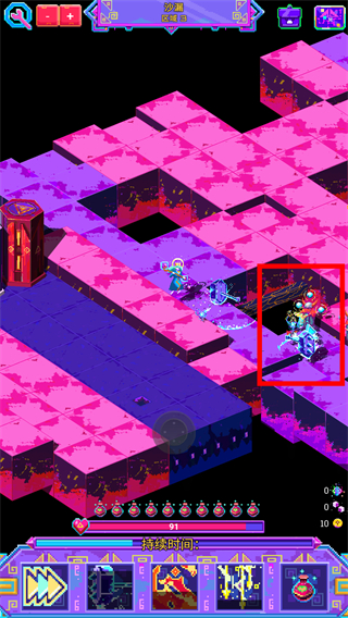 2、在迷宫中挑战红色框内的怪物,击败它们获取资源和经验。