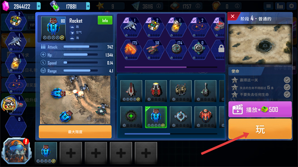1、在关卡选择界面点击【玩】按钮,进入“阶段4-普通的”关卡开始挑战。