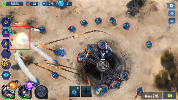 3、通过防御塔的攻击,消灭红色框内区域的敌人,阻止其靠近核心建筑,积累分数和资源。