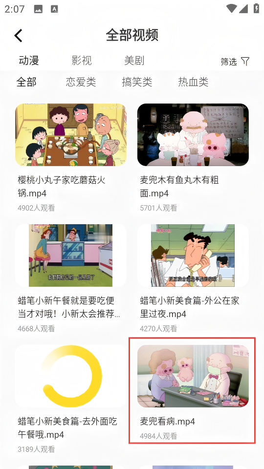 2、在“全部视频”页面,选择视频【麦兜看病】,进入该视频详情页。