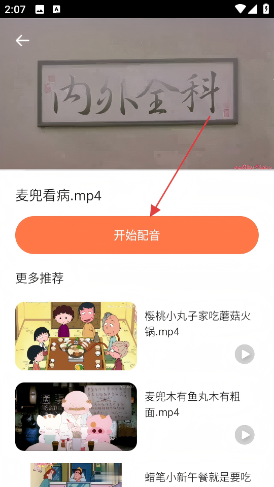3、在视频详情页,点击【开始配音】,进入视频配音界面。