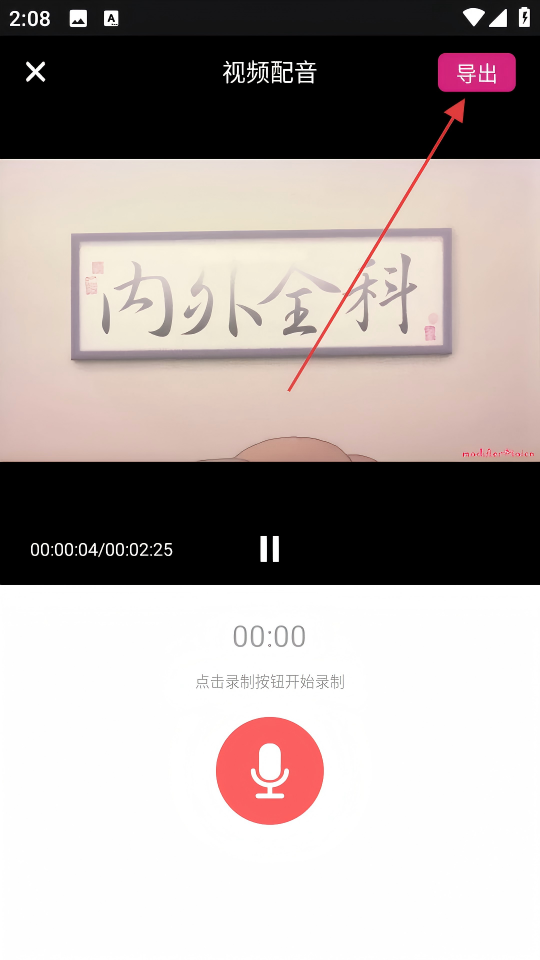 4、在视频配音界面完成配音操作后,点击右上角【导出】,完成配音视频的导出。