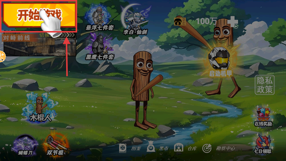 1、点击【开始游戏】,可切换【对峙前线】等地图,进入沙盒战场开启战斗,准备收集资源与撤离。