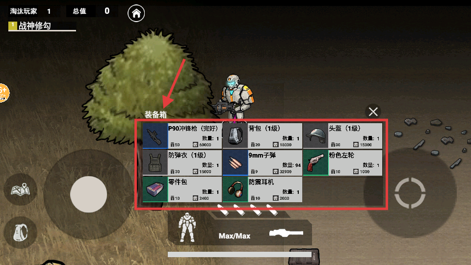 3、击败敌人后打开装备箱,优先拾取【P90冲锋枪】【防弹衣】等装备,零件包可用于装备升级,提升战斗能力。
