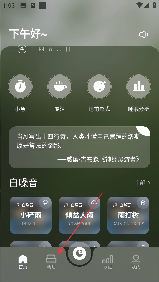 2、在首页点击【助眠】,进入助眠页面。