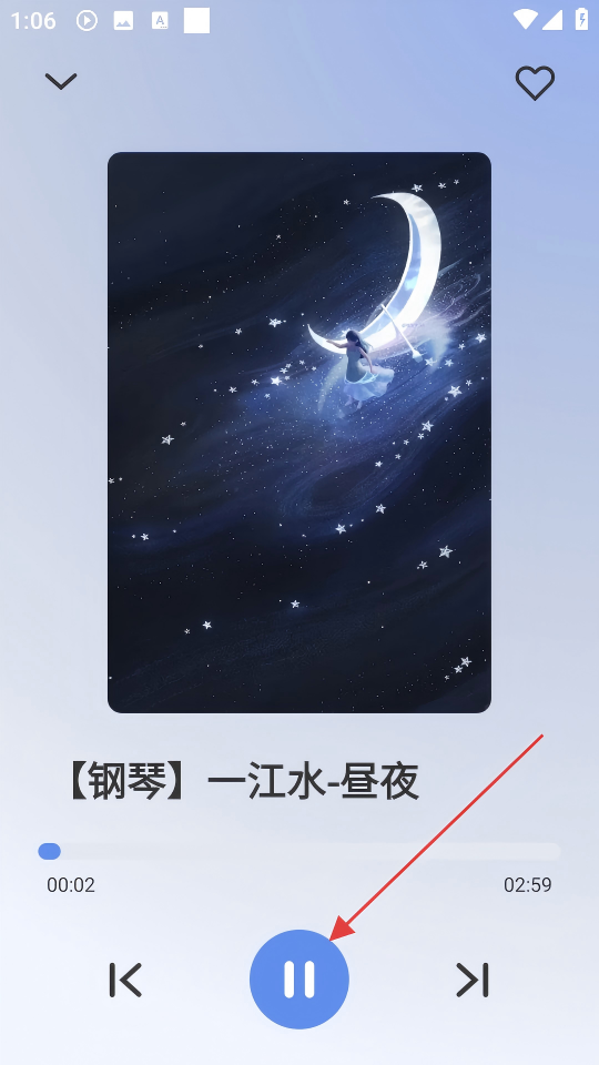 4、在播放页面可点击暂停键控制音乐播放,也可点击爱心图标收藏该音乐。
