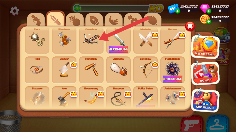 2、在武器列表中选择【Crossbow】,解锁并准备使用该武器。